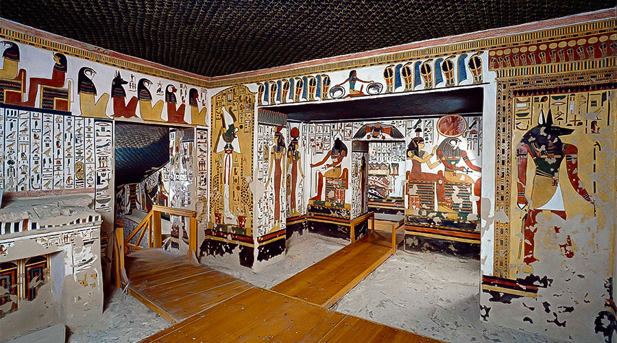Valley of the Kings – Tomb reliefs depicting Anubis overseeing the weighing of the heart and the soul’s rebirth.