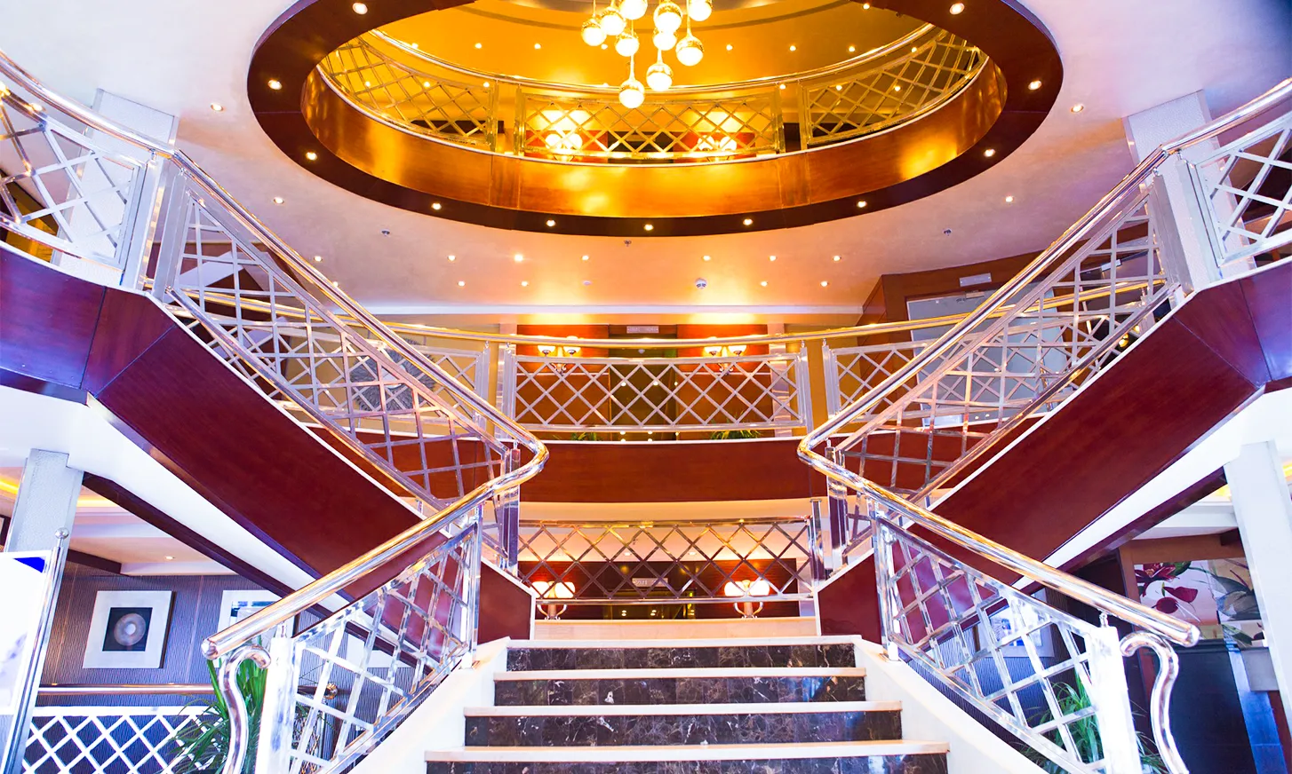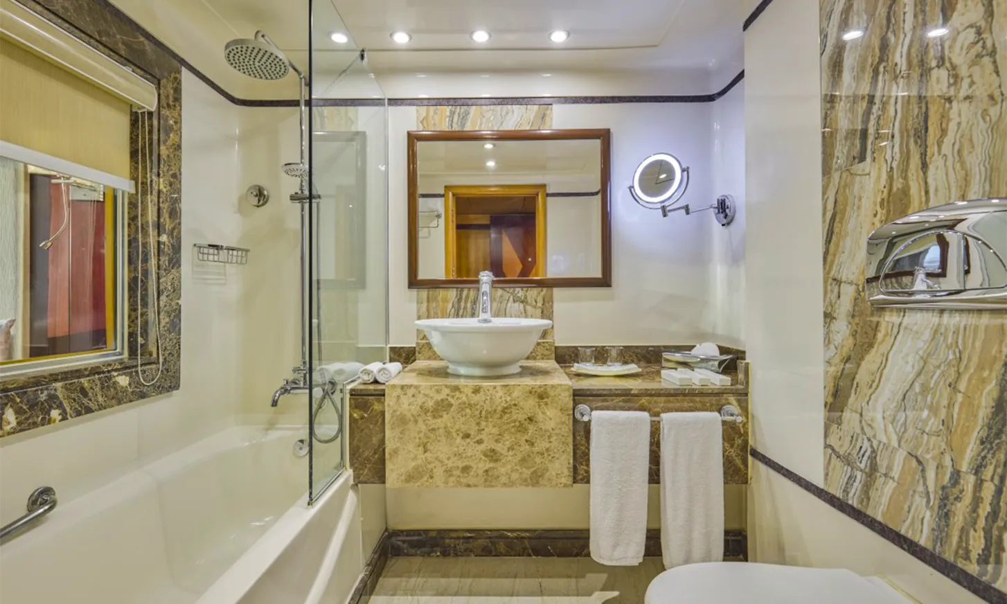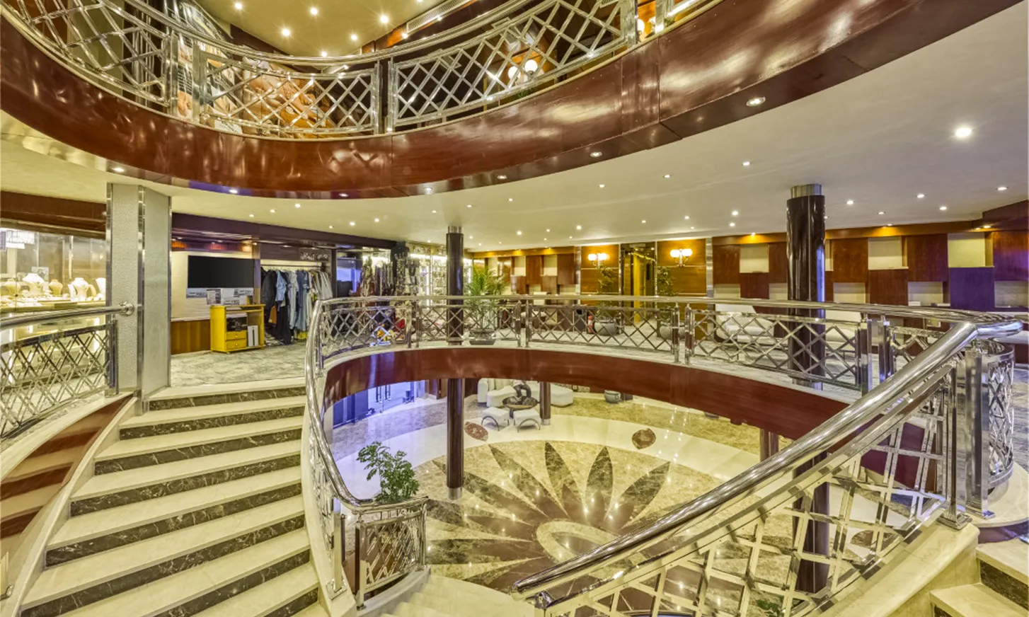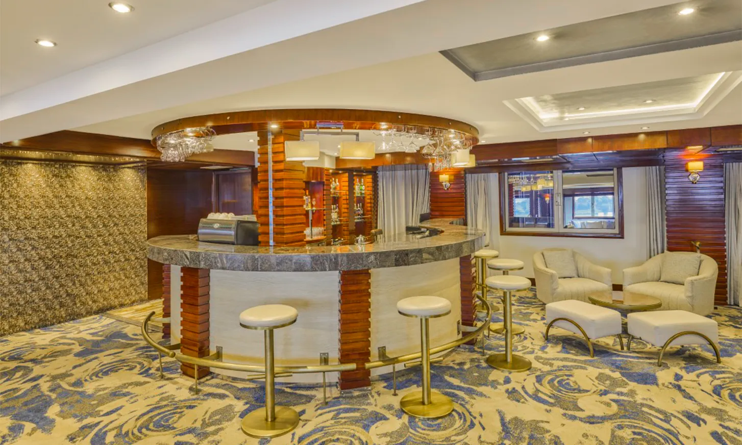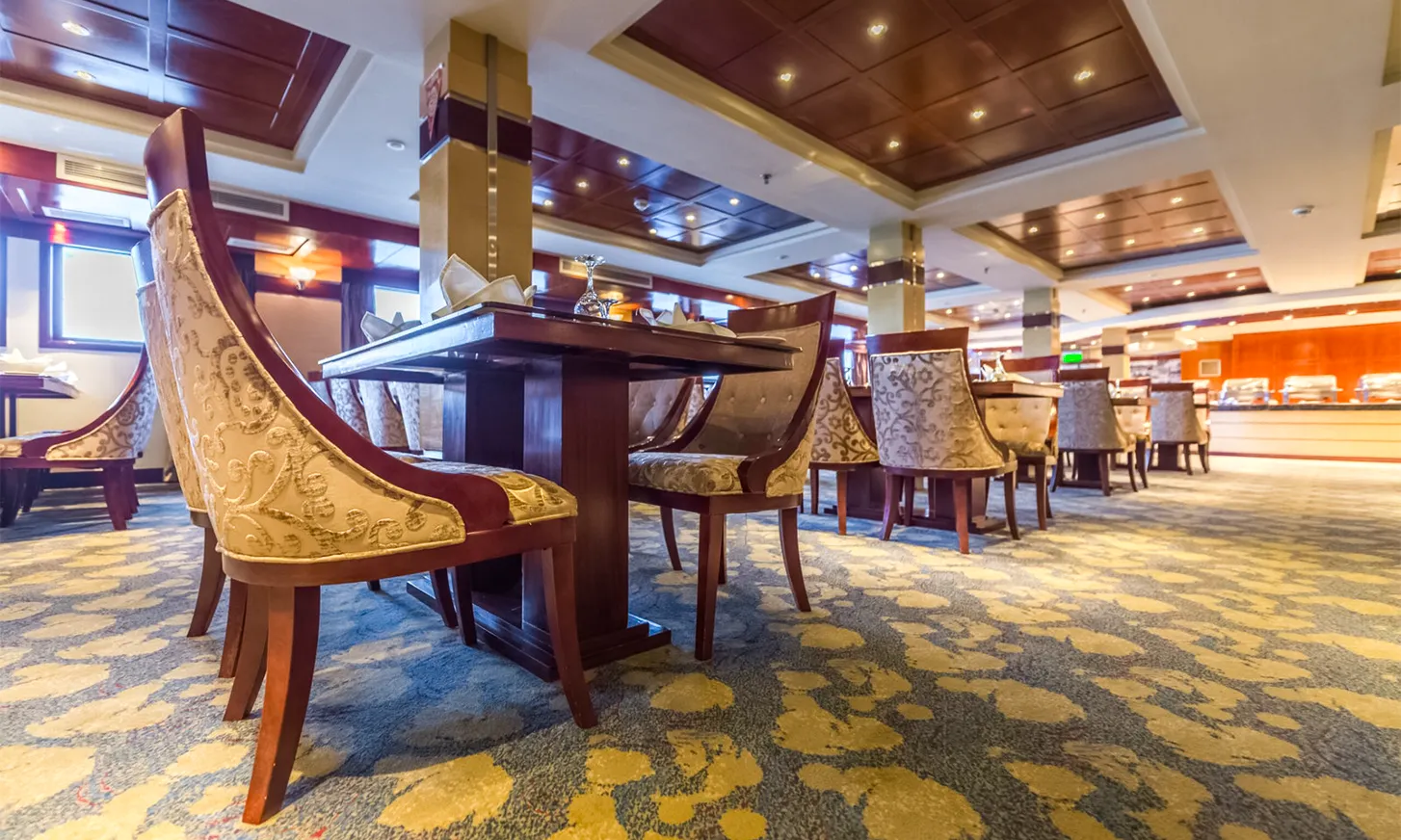 All cabins are beautifully appointed with modern amenities, including panoramic windows, individual climate control, LCD TVs, mini-bars, and private bathrooms with bathtubs. Whether you choose a standard cabin or a suite, you’ll enjoy elegant furnishings and a peaceful atmosphere for a restful stay.