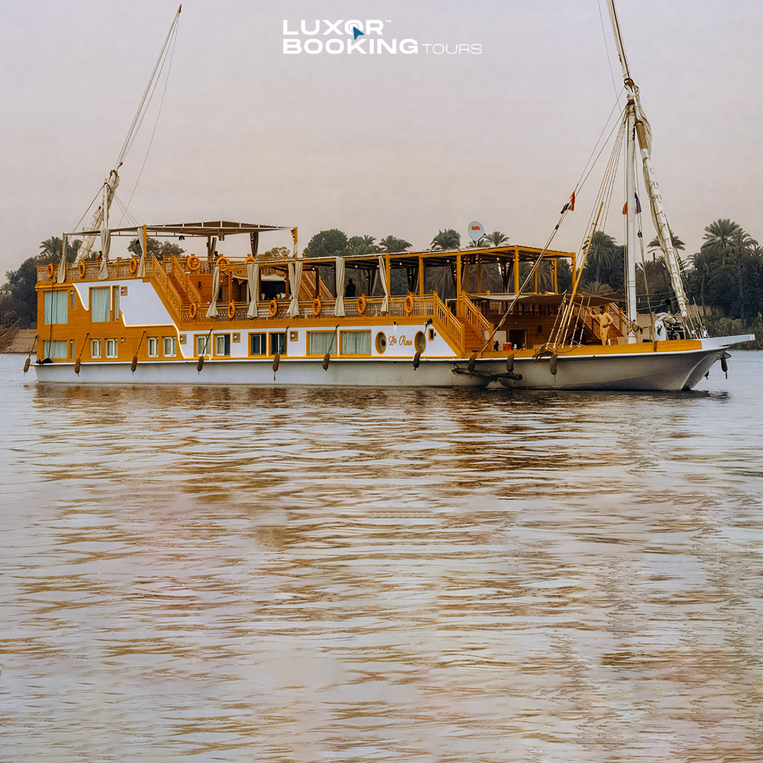A Dahabiya is a traditional Egyptian sailing boat offering a more intimate and luxurious cruise experience. Unlike large cruise ships, Dahabiyas accommodate fewer passengers and sail at a relaxed pace, allowing guests to explore hidden gems and less-visited sites along the Nile.