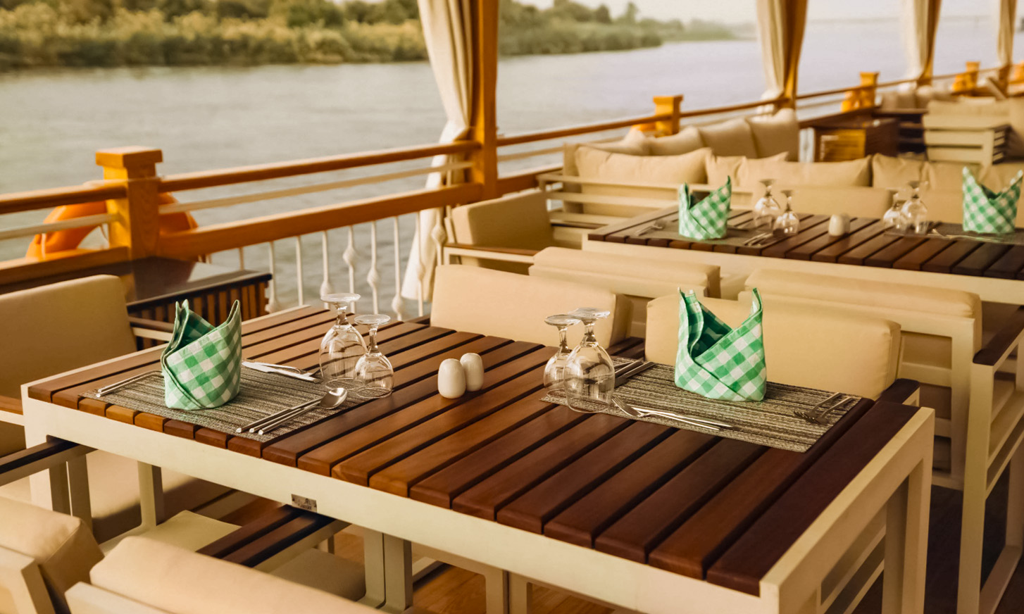 • Suites: The upper-deck suites open onto private balconies, ideal for morning coffee or stargazing over the Nile’s tranquil waters.