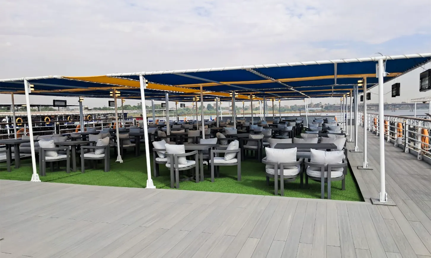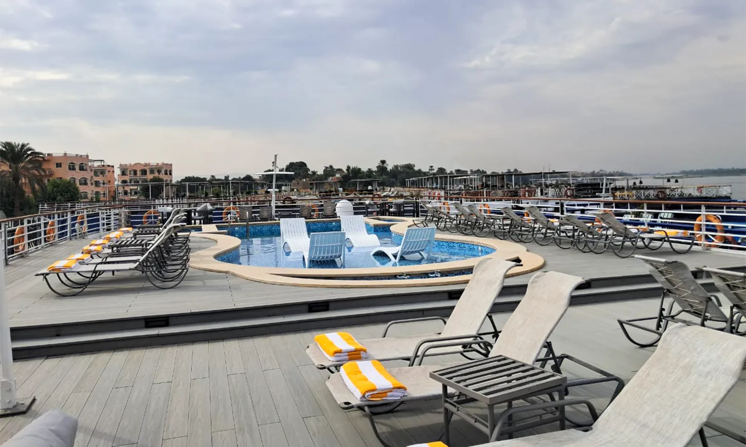 From the moment you step onto the Nile Dolphin, you’re welcomed into an ambiance of sophisticated elegance. The Sun Deck is a prime spot to relax, featuring a refreshing swimming pool, shaded lounges, and a bar. The restaurant offers a delightful mix of international and Egyptian flavors, while the lounge bar provides a cozy retreat for evening drinks and entertainment.