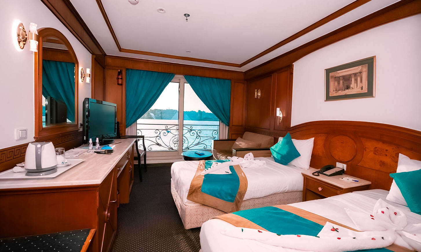 • Comfortable, air-conditioned cabins with panoramic Nile views