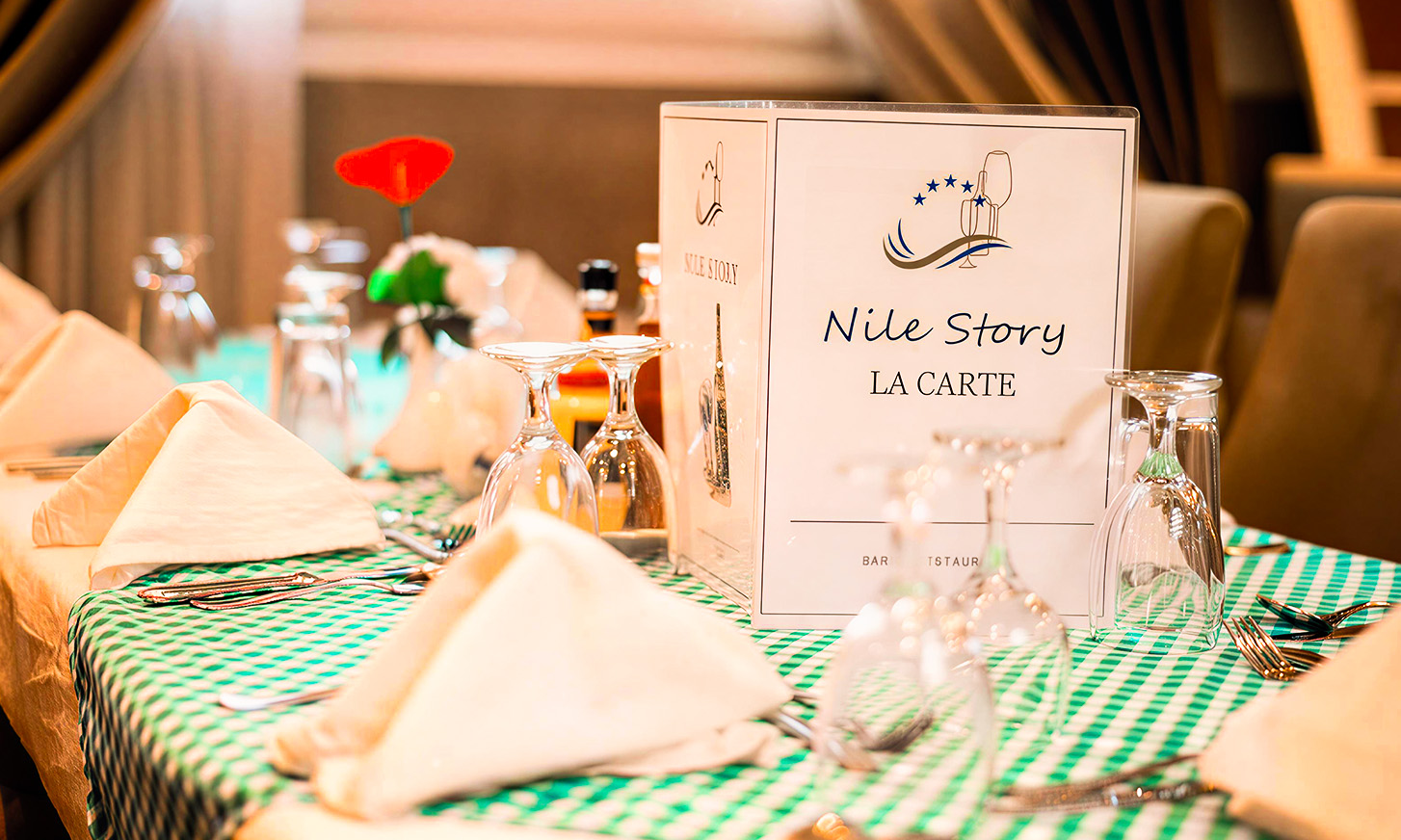 The Nile Story offers a perfect blend of traditional Egyptian charm and contemporary comfort. Guests can enjoy panoramic Nile views from the sun deck, relax by the swimming pool, or indulge in fine Egyptian and international cuisine at the onboard restaurant. Evenings come alive with folkloric entertainment, Nubian music, and tranquil stargazing on deck as the cruise sails through history.