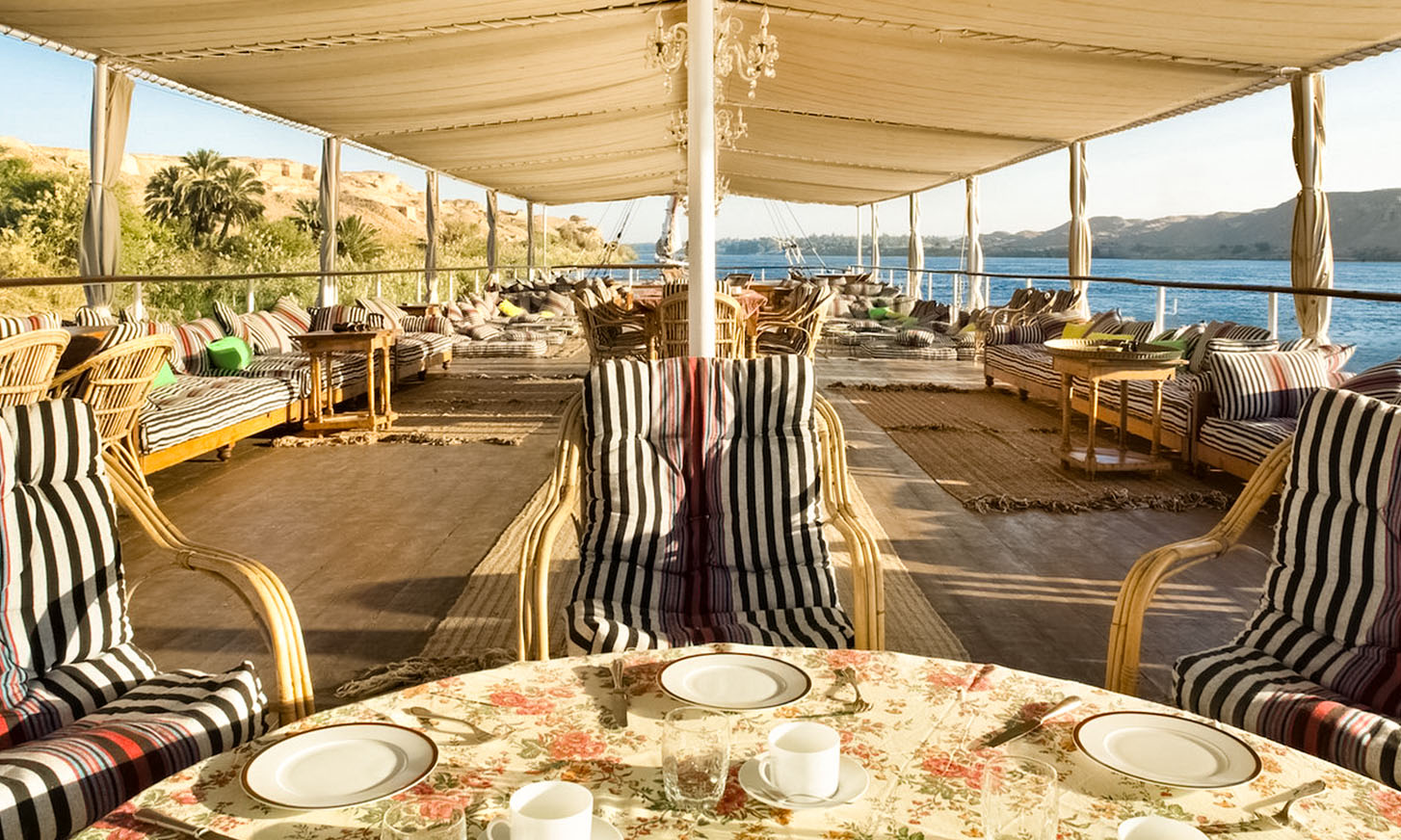 • Relax on deck with soft breezes, tea, and panoramic Nile views.