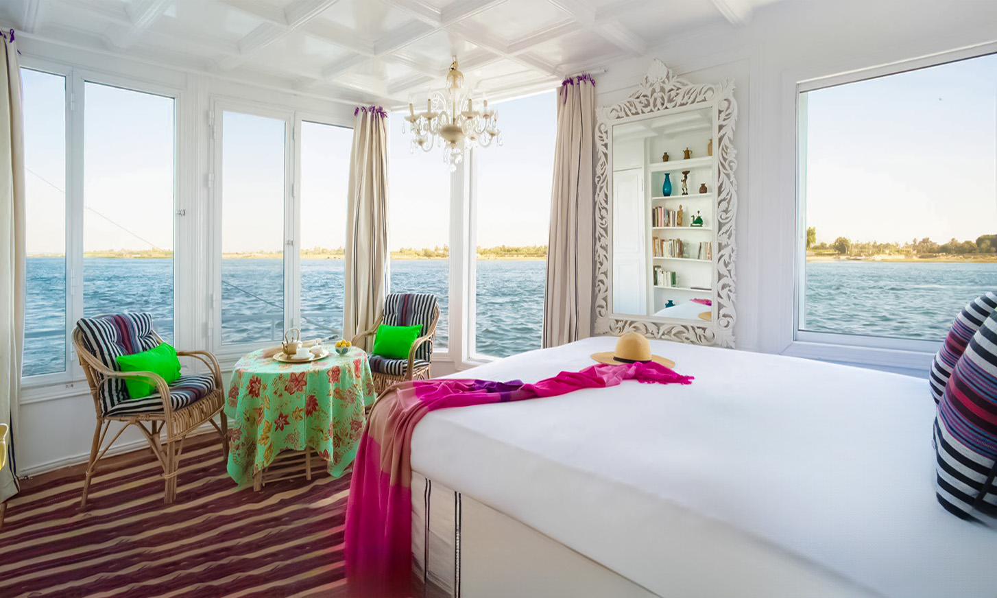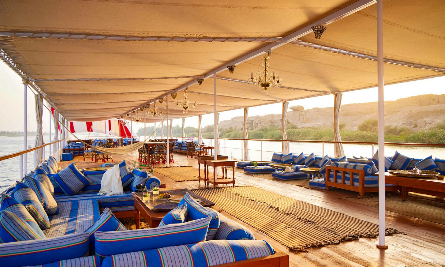 • Handcrafted Dahabiya design with wide decks and shaded lounges