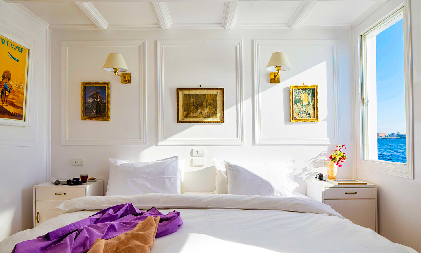 The Nour El-Nil Dahabiya features a select number of luxurious cabins and signature suites, each offering large windows, crisp linens, and minimalist décor inspired by Egyptian artistry. Private bathrooms, air conditioning, and daily service ensure complete comfort while preserving the authentic charm of traditional Nile sailing.