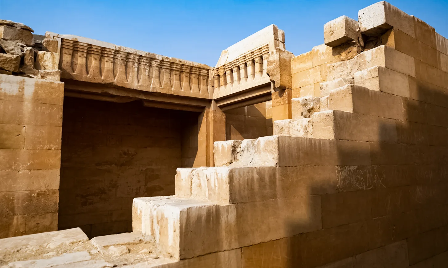 Sakkara: Continue to Sakkara, home to the Step Pyramid of Djoser, the oldest large-scale stone structure in the world, designed by the famed architect Imhotep.