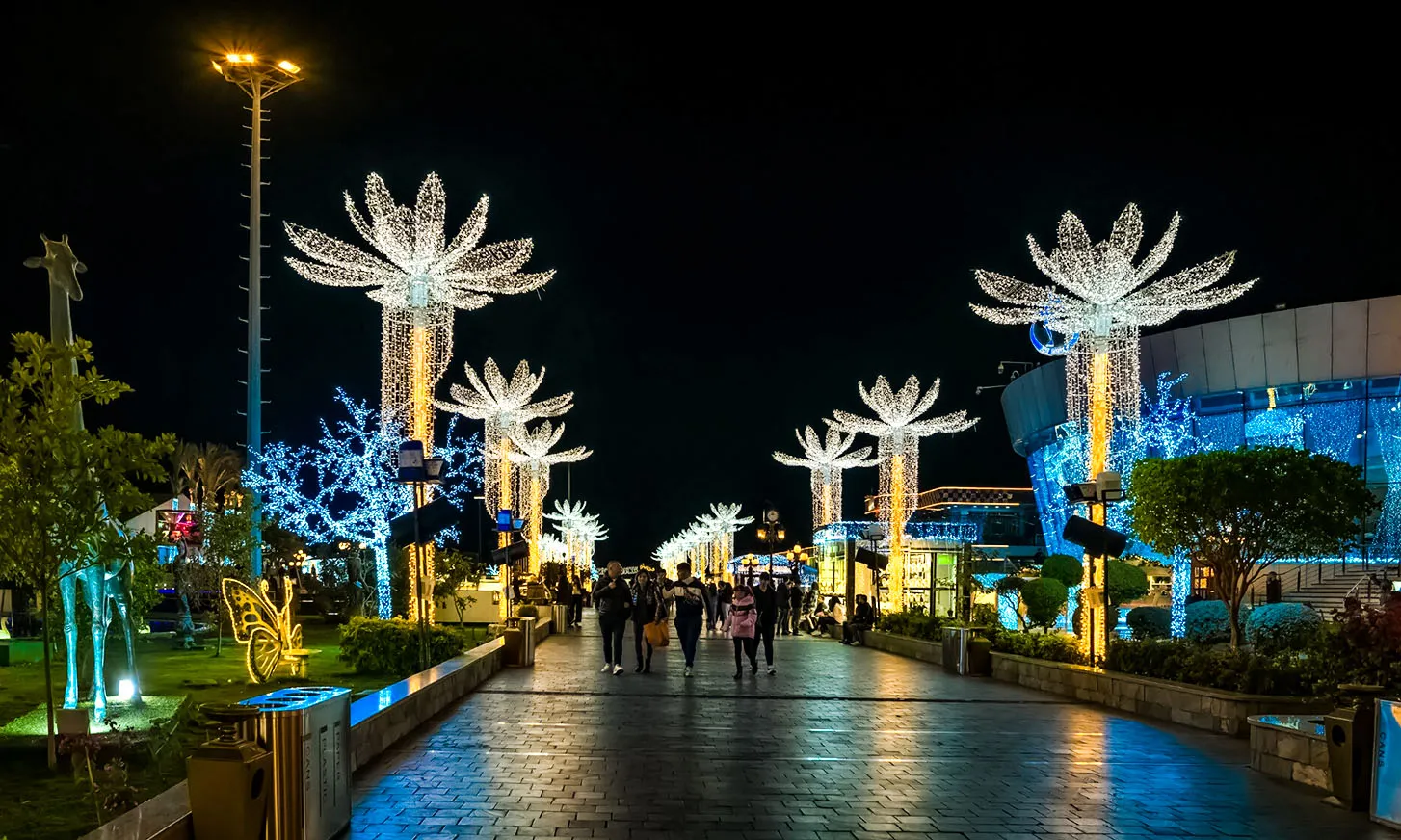 Enjoy a relaxed walking tour as you discover beautifully lit streets, dancing fountains, and a vibrant mix of modern shops, traditional markets, and cultural displays. Stop to browse souvenirs, crafts, and local treasures while soaking up the lively atmosphere.