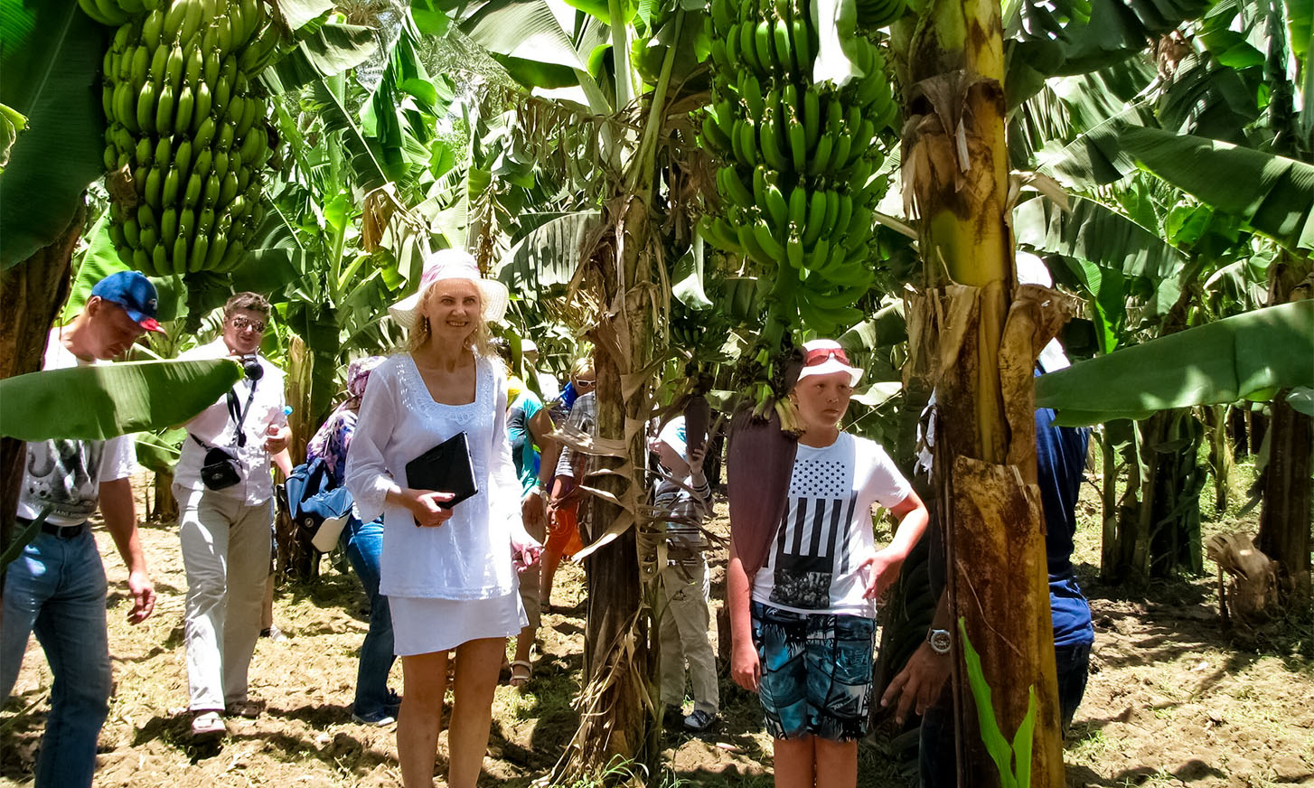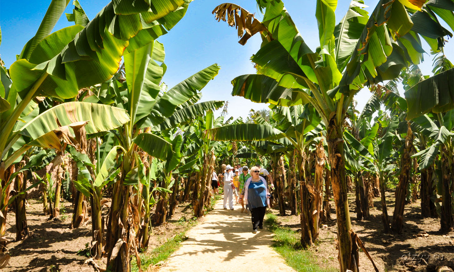 • Arrive at Banana Island, a small lush paradise filled with palm trees and fruit farms